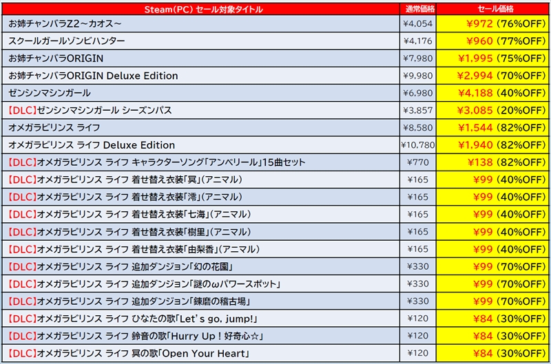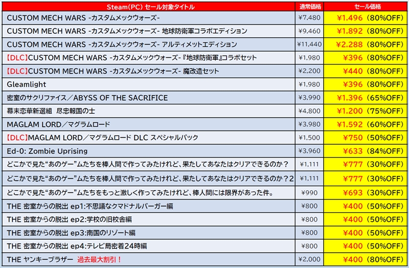 そのほか『THE ヤンキーブラザー』、『Nightshade/百花百狼』、『DesperaDrops/デスペラドロップス』、『あのゲー』シリーズなどバラエティ豊かなPCソフトがセール対象になっている。