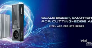 Intel Arc Pro B70シリーズは、最大32GBのVRAMを搭載し、最新の高度なAI推論処理の要件を満たすよう設計されている。