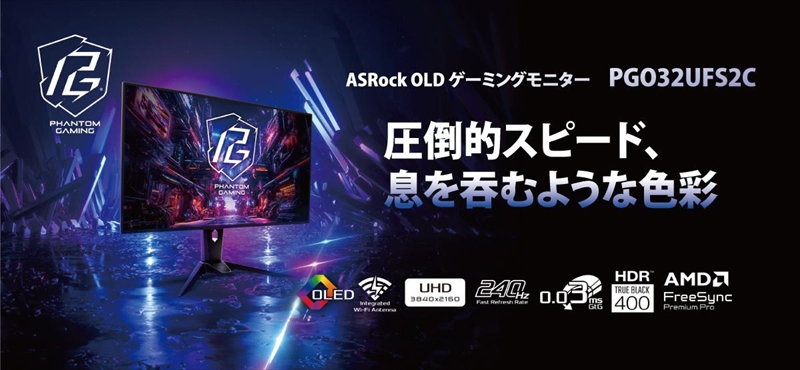 ASRockは、、「Phantom Gaming」および「Challenger」シリーズゲーミングモニターの国内販売を発表した。同社はWOLEDパネルを採用した31.5インチ4Kモニター「PGO32UFS2C」や、27インチWQHDモニター「PG27QFT2C」および「PG27QFT1B」。