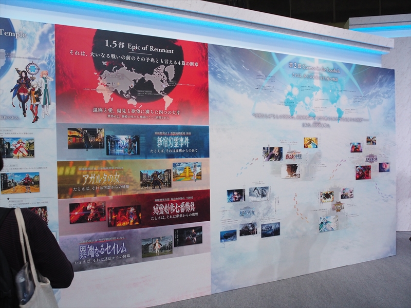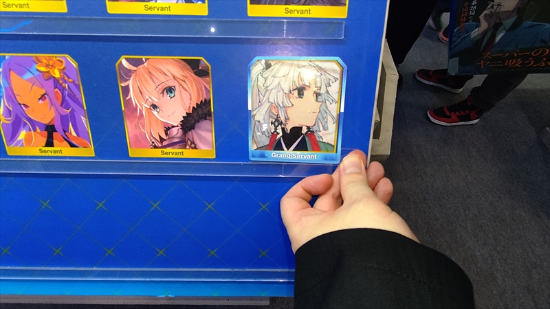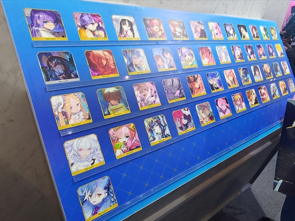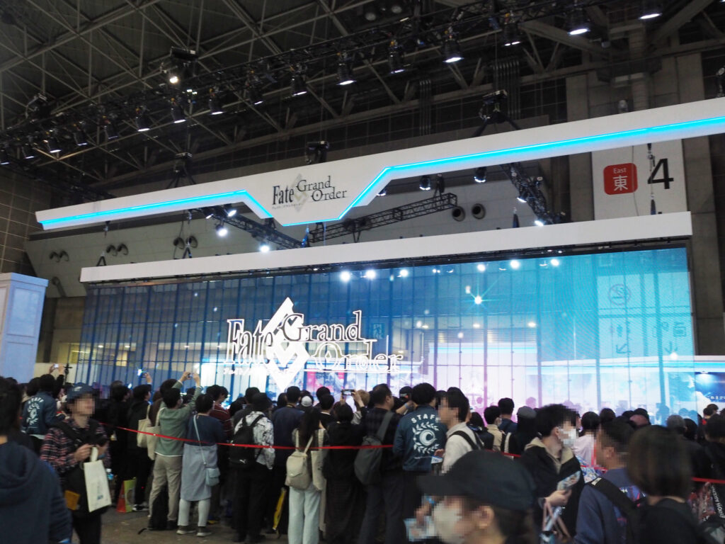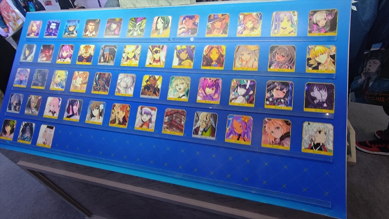 今年も『Fate/Grand Order』(FGO)がブースを出展。「みんなで作る」をコンセプトに会場で配布されるクリアカード「冠位選定フレーム」と一緒に会場に設置されたサーヴァントデータベースの顔写真を撮影すると特製トートバッグがもらえるというキャンペーンを実施。