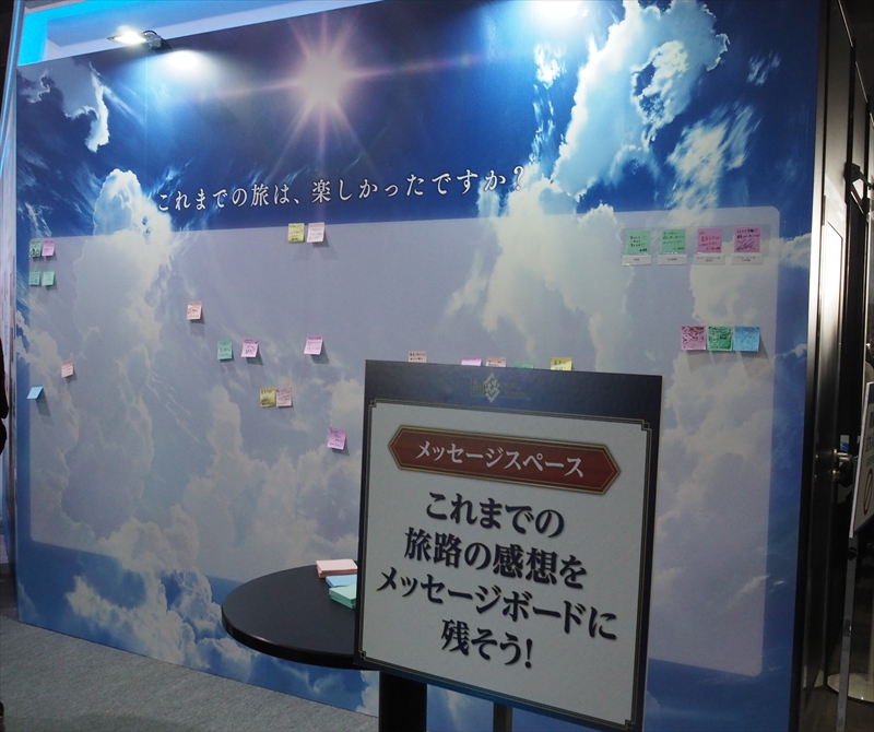 また、壁にはこれまでの歩みを振り返るシーンを展示。ファンが想いを綴って貼れるメッセージボードも用意されていた。