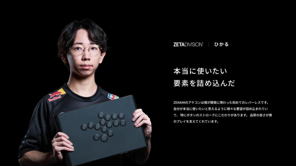 同社は格闘ゲームに求められる「速さ」と「正確さ」を、スイッチ性能だけでなく筐体構造や内部制御まで含めて最適化することを目指し、開発を行っている。また、ボタンのストローク量、配置、本体の高さ・幅・奥行き、デザインなど細部に至るまで、ZETA DIVISION所属選手との数多くの試作を経て完成。競技シーンでの実用性を徹底追求したとのこと。