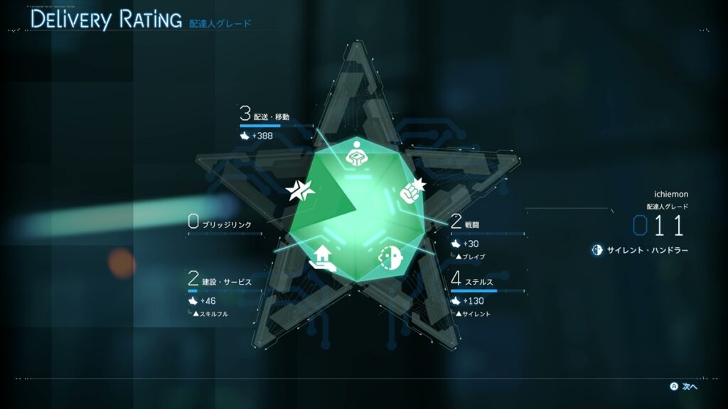ちなみに、条件をクリアした状態で荷物を納品すると依頼人から「いいね」を獲得でき、それに伴って「配達人グレード」と「依頼人との親密度」も上がっていく。前者はサムのステータスを強化できる「ASAPエンハンスト」が増え、後者は素材の保管量や作れる武器などが増えるといった恩恵が享受できる。「いいね」を稼ぐことが攻略のカギと言っても過言ではないだろう。