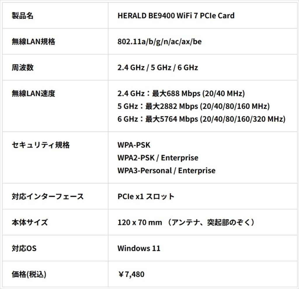 https://jp.msi.com/Networking/HERALD-BE9400-WiFi-7-PCIe-Card