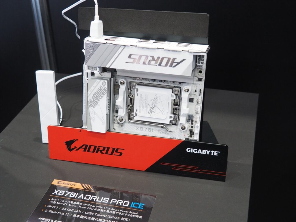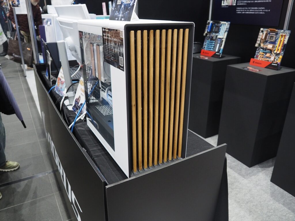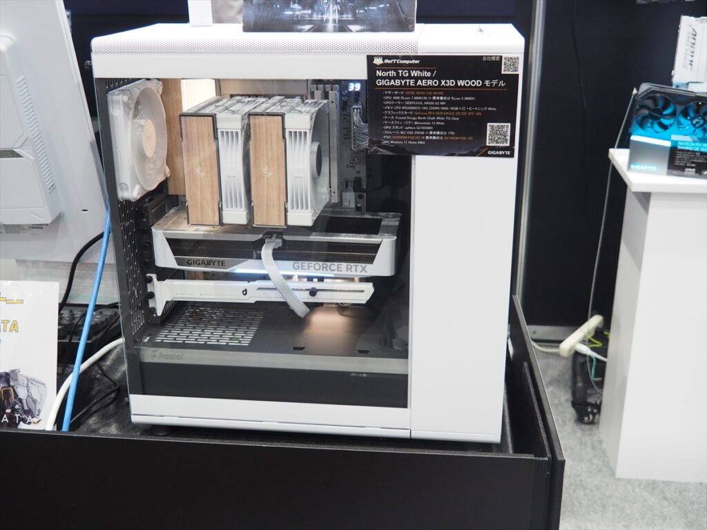 そのほか、Fractal Designのフロントパネルに木材を使用した「North Chalk White TG Clear」と、木目調を取り入れたマザーボード「X870E AERO X WOOD」を組み合わせたRefT ComputerとのコラボPC「NorthTGWhite/GIGABYTE AERO X3D WOODモデル」などを展示。