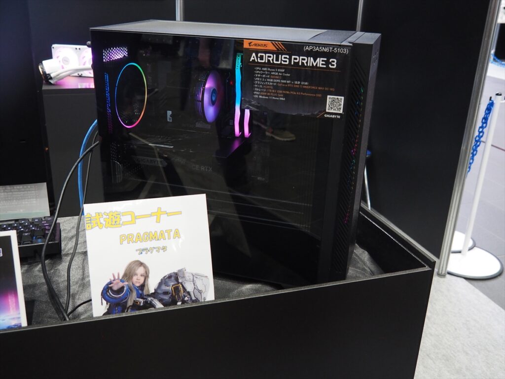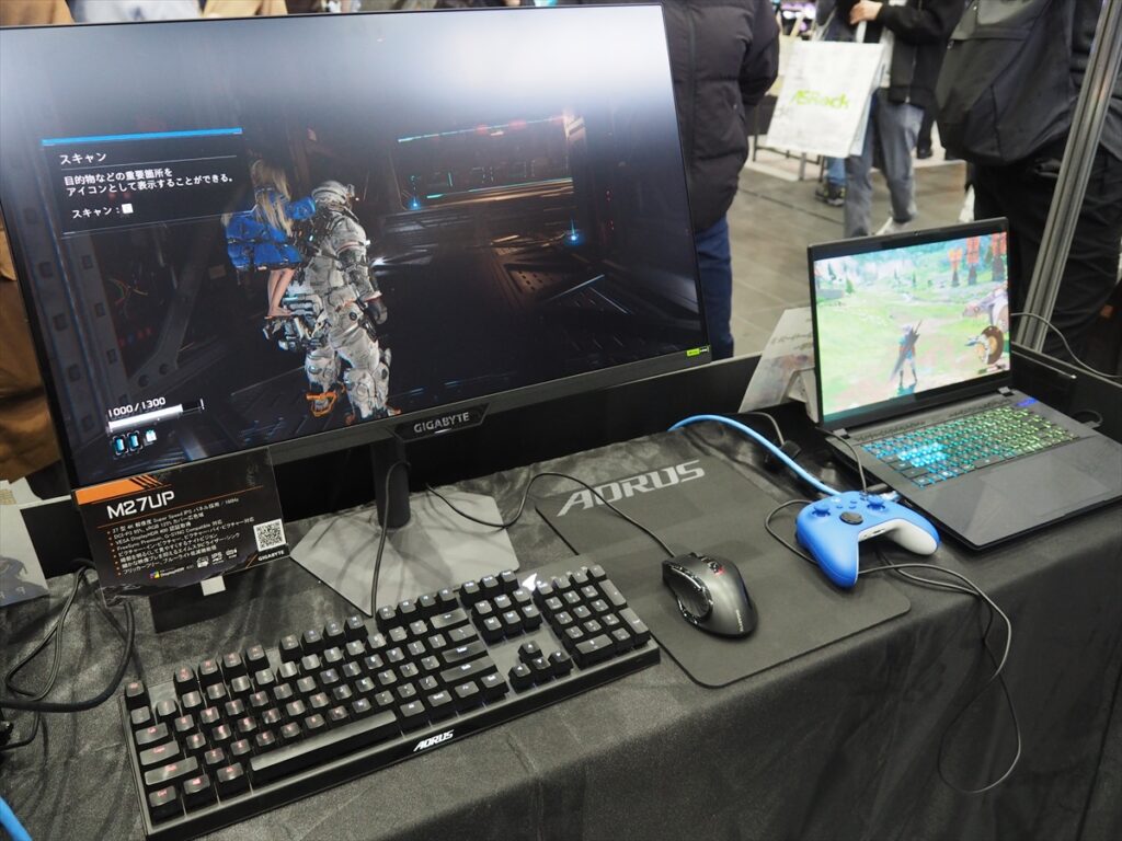 また、Ryzen 5 9500FとGeForce RTX 5060 Ti WINDOFORCE MAX OC 16Gを搭載した今年の2月6日に発売されたゲーミングPC「AORUS PRIME 3」と、27インチディスプレイ「M27 UP」を組み合わせた環境で2026年4月17日発売のカプコン『プラグマタ』が試遊できた。