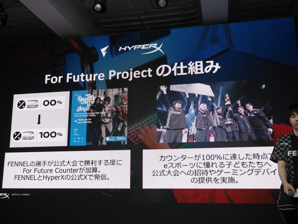 さらに、このパートナーシップにより、For Future Projectを共同実施する。For Future Projectは、FENNELの選手が公式大会で勝利するたびにFor Future Counterというポイントが加算され、100%に達したタイミングで、eスポーツをやりたくてもやれなかった子供たちや、大会を生でも見たかったけれど、遠くて来られなかったという子供たちの夢を叶えるプロジェクトとのこと。