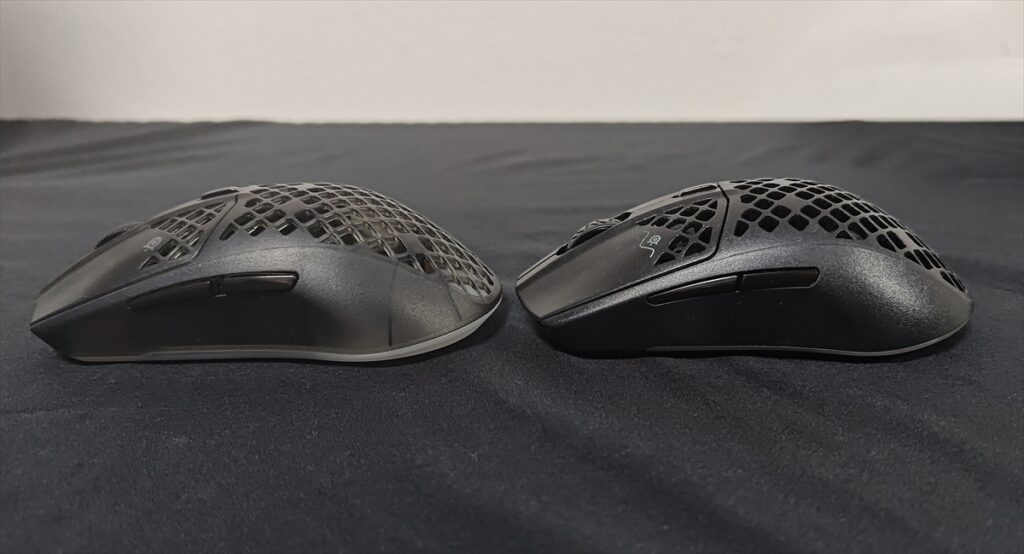 左が「Aerox 3 Wireless Gen 2」、右が「Aerox 3 Wireless」。横並びだと分かり辛いが、細みで尖った形状の「Aerox 3 Wireless」と異なり、「Aerox 3 Wireless Gen 2」はフラットな形状になり、入力しやすくなっている