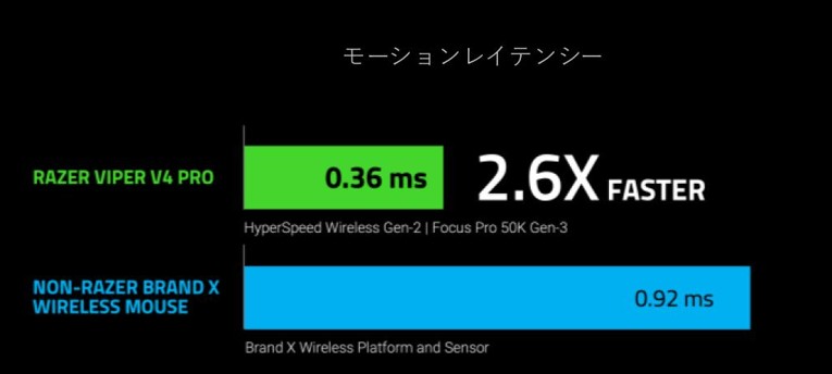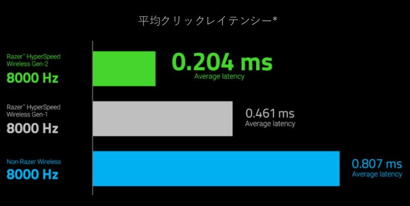内蔵された背の高いアンテナにより信号強度が高められていて、やや重みのある筐体が安定性を確保する「第2世代 Razer HyperSpeed Wireless」システムを採用。前世代よりも効率性が60%向上し、 True 8000Hzのポーリングレートを実現。レイテンシーが55%低減していると謳う。