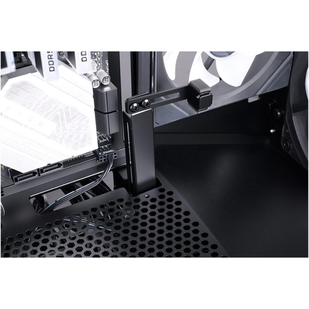グラフィックカードは長さ400mmまでサポート。大型のグラフィックカードを支えるため、調整可能なたわみ防止ブラケットを備えています。ケーブル管理もしやすく、デザイン性と実用性を兼ね備えたPCケースとしている。