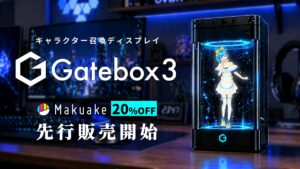 Gateboxは、好きなキャラクターと一緒に暮らせるキャラクター召喚ディスプレイ「Gatebox」の最新モデル「Gatebox3」を、本日2026年4月29日(水)14時からアタラシイものや体験の応援購入サービスMakuakeにて先行販売を開始した。