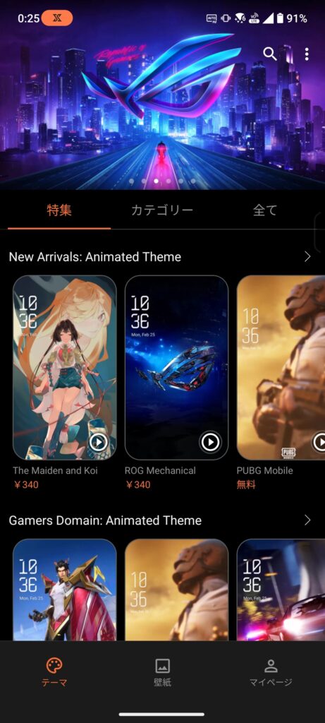ROG Phone 8は機能も多彩だ。「テーマ」ではプリインストールされているスタンダードとClassic以外のホーム画面のテーマを入れ替えられる。有料なものもあれば、無料のものもあり、その種類は豊富だ。