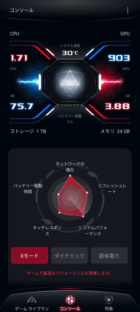端末の最適化機能Xモードも健在