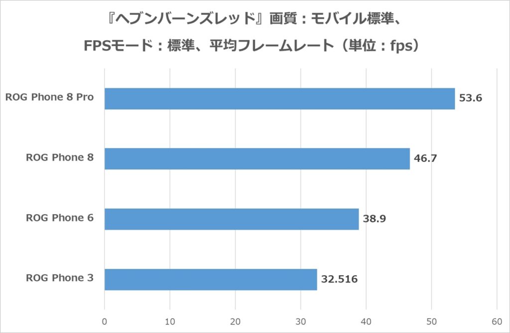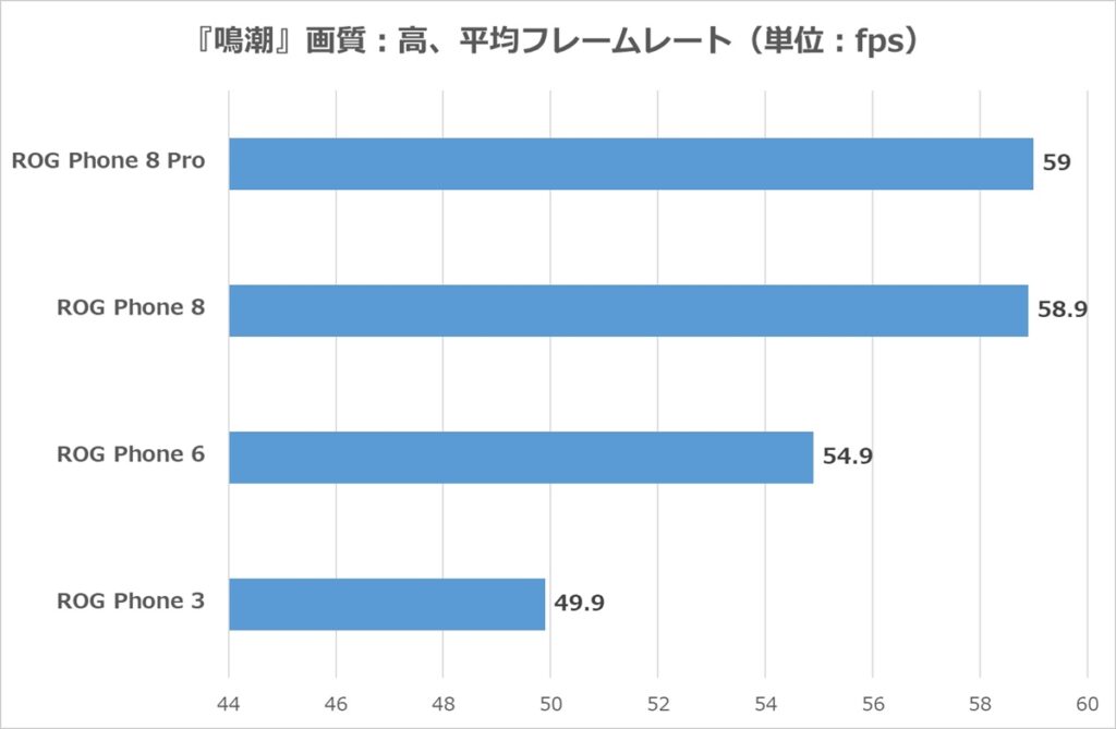ROG Phone 8はほとんどのゲームで50fps以上をキープ