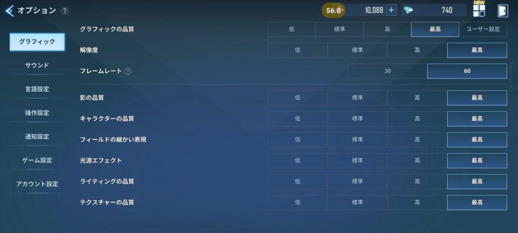 同じように原作人気が高く、今年の5月8日に配信されたばかりの『俺だけレベルアップな件:ARISE』(俺アラ)でもテストをしてみた。画質は「最高」、フレームレートは「60」にしている。
