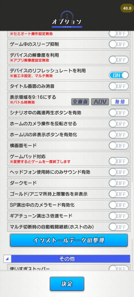 最後に、ゲームの実験的に機能を使うとスマホの性能をフルに活用し、最大リフレッシュレートを活かそうとする『アリス・ギア・アイギス』で、どこまで高フレームレートで動作するのかを確認した。